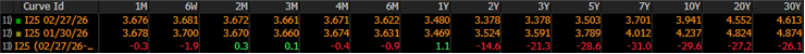 US Treasury Curve – February Yield Change
