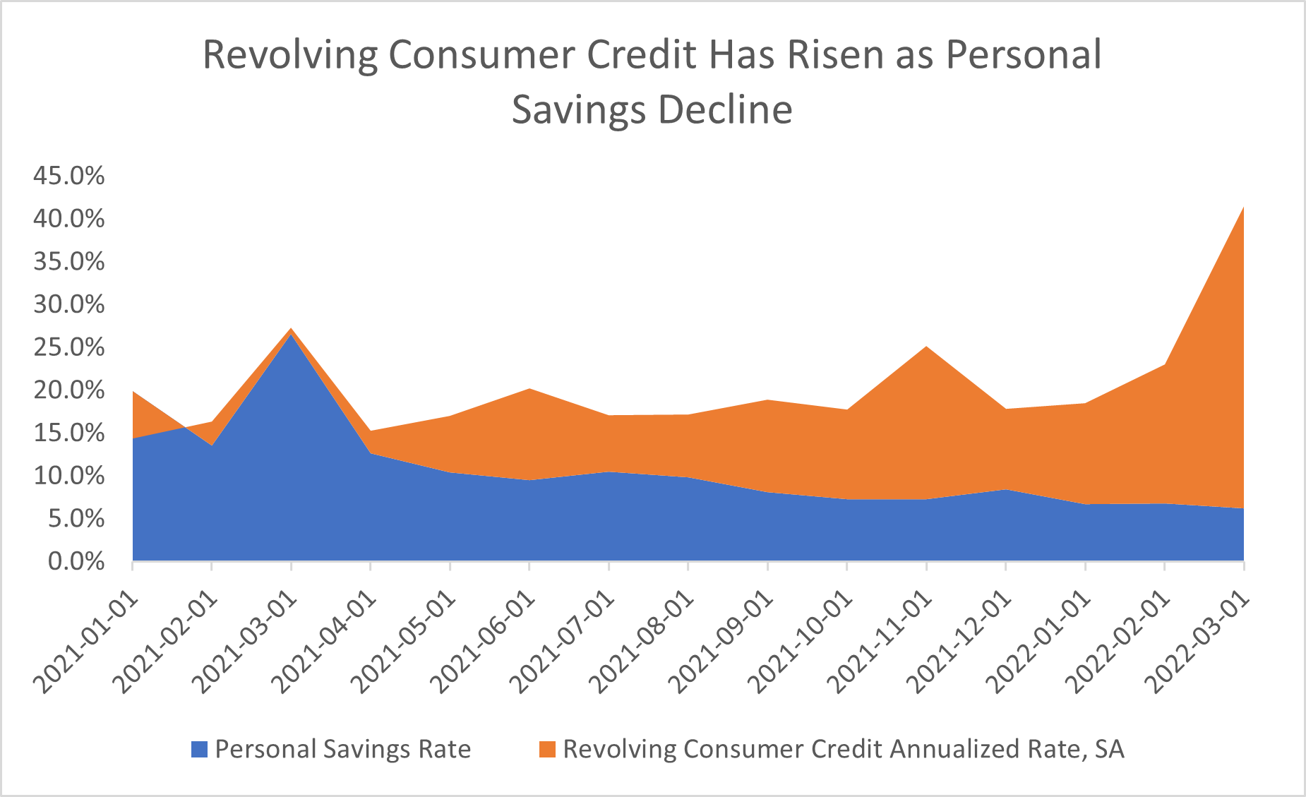 Figure 4: Revolving Consumer Credit Has Risen as Personal Savings Decline